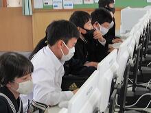 キャリア教育として、1年生がインターネットを使い、仕事調べを行いました。将来の自分の仕事をまだ決めていない生徒もいるため、今回は「○○に関する仕事」や「興味をもった仕事」など、幅広く仕事や職業を調べました。生徒は楽しそうに調べ、プリントに記入していました。