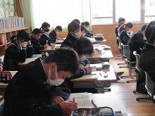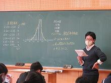1年生の数学では、今、データの活用について勉強しています。これからの情報社会を生き抜くために必要な力です。図形や計算ではなく、与えられた資料を分析したり結果から新たなことを見いだしたりすることができるようになるために真剣に勉強していました。