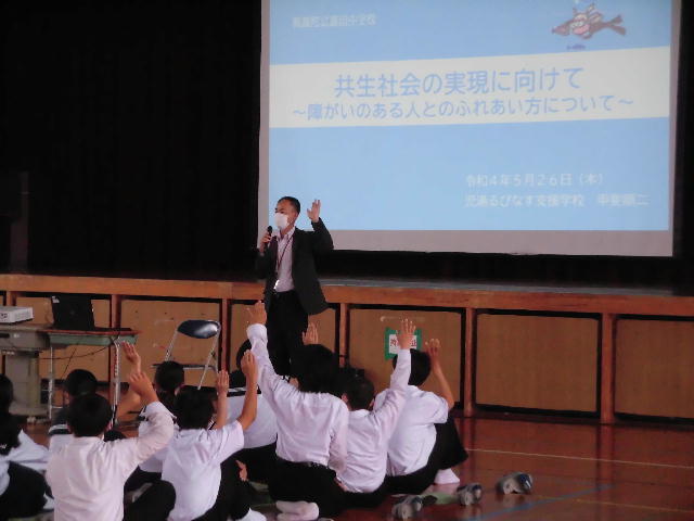 5月26日(木)交流学習講話(1年)・修学旅行説明会(2年)が行われました。1年生は総合的な学習の時間のテーマ「郷土新富を知ろう」の学習の取組の一つとして県立児湯るぴなす支援学校との交流学習を7月1日(金)に行います。2年生は、12月7日(水)~9日(金)に計画されている長崎・福岡方面への修学旅行の保護者・生徒対象の説明会です。いろいろな体験を通して、新しい自分をぜひ見つけてください。