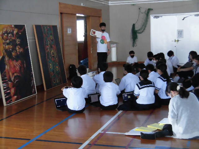 1年生は総合的な学習の時間のテーマが「郷土新富を知ろう」です。その学習の取組の一つとして、こゆ財団から講師をお招きして講話を行いました。生徒それぞれのテーマに沿った学習を行いました。