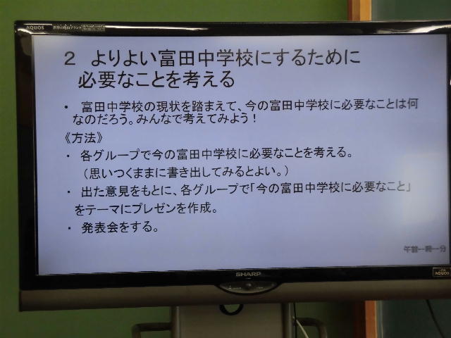 12月26日(月)にリーダー研修を行いました。よりよい富田中にするために、いろいろなアイデアを出す機会になり、有意義な時間となりました。