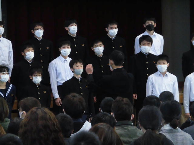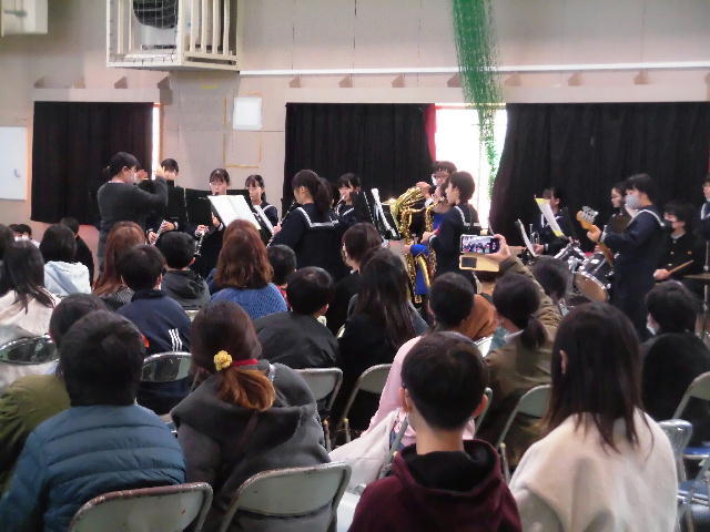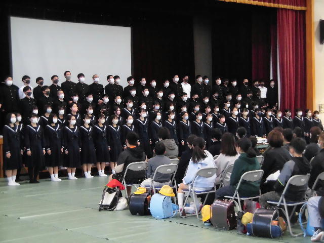 12月20日(火)新入生説明会を行いました。6年生の皆さんの入学を心からお待ちしております。写真は3年生による校歌、吹奏楽部の演奏、2年3組の合唱披露、3年生代表あいさつの様子です。