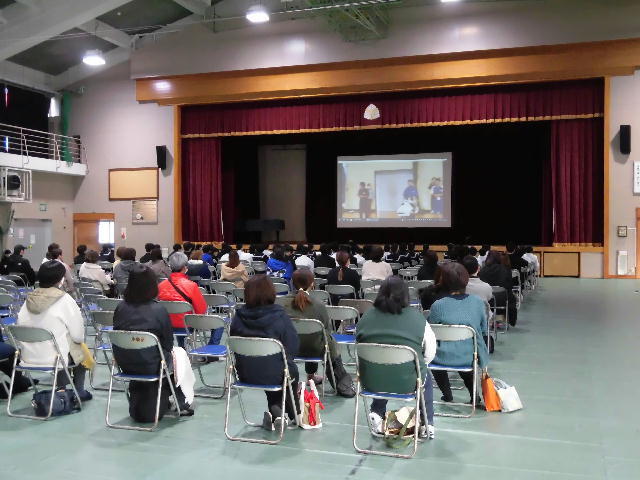 12月16日(金)に参観日を行いました。2・3年生は、各教室での参観授業でした。1年生は、体育館で総合的な学習の時間に調べた「郷土新富を知ろう」を発表しました。