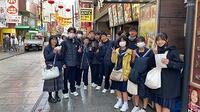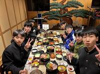 浅草で、お笑い芸人に遭遇しました。また、夕食の様子です。全員元気で1日目を終えたそうです。