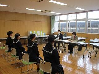 18日(木)3年生の面接指導に町教育委員会の教育長をはじめ5名の方々が面接官として面接の指導を行っていただきました。これからの3学年の指導に貴重なご意見をいただきました。生徒たちも非常に緊張した中での面接を経験ができ、本番さながらだったのではないかと思います。改善点をしっかり自分のものにしていきましょう。ご協力をいただいた町教育委員会の方々ありがとうございました。