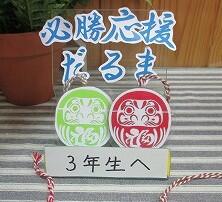 3年生は、いよいよ本格的な入試に突入します。図書室の入り口には「合格祈願・必勝応援だるま」があります。自分の夢実現にむけて、入試で力を出し切りましょう。