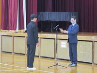 31日(水)の全校集会で表彰を行いました。表彰は「西都児湯の子どもたちによる絵画展:銅賞2名」「全国中学生人権作文コンテスト宮崎県大気会:奨励賞1名」「明るい選挙啓発書道の部:特選1名、佳作:1名」「男子ソフトテニス県地区別対抗団体選考会大会:優勝:1ペア」「県中学生新人テニス大会女子団体:第3位」「県スポーツ奨励賞:空手女子団体」「スクールダンスコンクール:県教育長賞」でした。スクールダンスコンテストのダンス披露もありました。