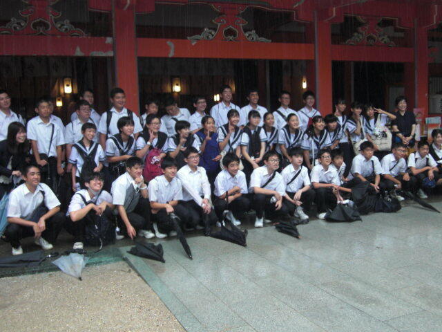 今日の午後は、宮崎市生目のアイビースタジアムと、はんぴドームに行きました。アイビースタジアムでは、選手が入るベンチにも入れていただきました。その後は、はんぴドームで生徒の企画によるレクリエーションをしました。さらに、宮崎市フェニックス自然動物園に移動して、修学旅行最後のひとときを楽しみました。雨に悩まされましたが、バスガイドさんから「気さくで明るい生徒ですね」と言っていただいたように、生徒たちは思い思いに楽しむことができたのではないかと思います。また、2日間を通して、予定の時刻には確実に集合できる(時間を守ることができる)というすばらしい一面を見せてくれました。雨に濡れたりもしましたので、今日と明日はゆっくりと体を休めてください。