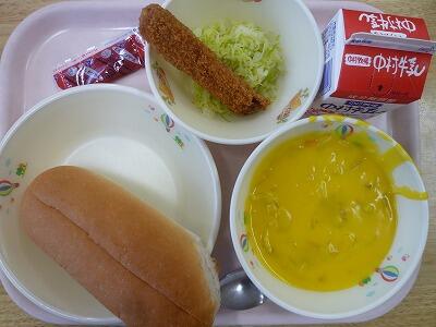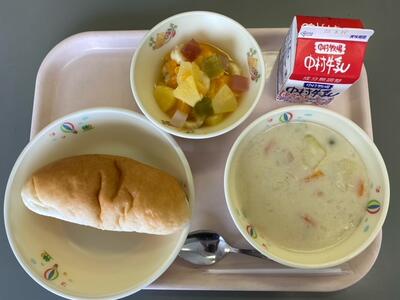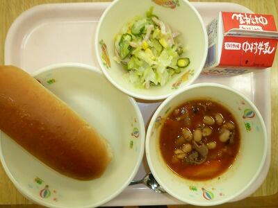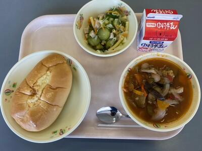 最近寒くなってきましたので、あったかいシチューはうれしいです。ケチャップとデミグラスで作られたシチューはほくほくなジャガイモやインゲン豆でさらにほっこりします。グリーンサラダがさっぱりとしてます。チーズパンでおなかもいっぱいになりました。(ちなみに12日は給食試食会でした)