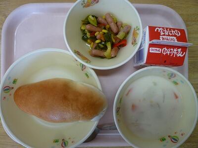 12日(水)のこんだては、「チーズパン」「牛乳」「グリーンサラダ」「ポークシチュー」でした。