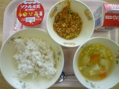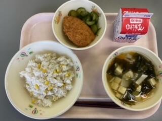 「コーンご飯」「牛乳」