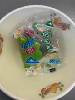 デザート「かしわもち」でした。若竹の歯ごたえと香りがとてもいいです。梅の味に食欲もそそられます。鰹のフライにコーンご飯とお腹いっぱいになりました。デザートもうれしいです。