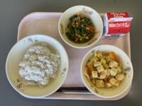 「鶏肉と大豆の煮物」「ごま酢あえ」です。