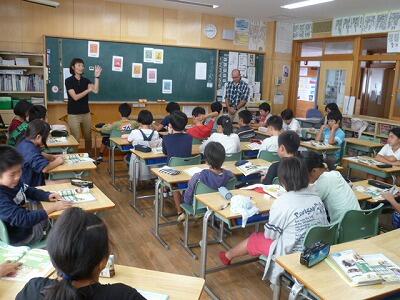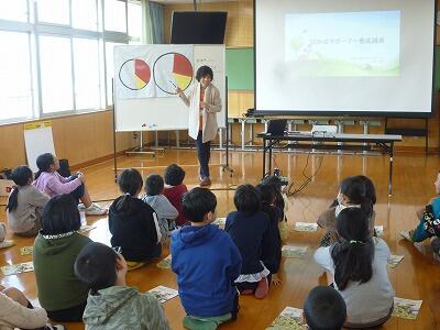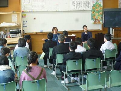 これは、総合的な学習の時間の一環として行ったもので、新富町「こゆ財団」から講師をお呼びし、持続可能な社会について学習したものです。