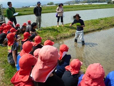 本校5年生の体験的学習です。まず集合し説明を聞きます。