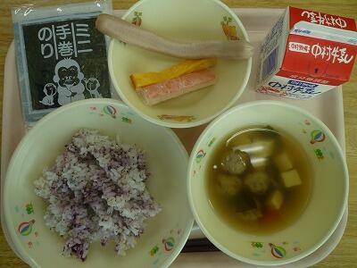 《ゆかりご飯 すまし汁 手巻きの具 のり 乳牛》