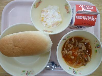 《コッペパン 豚肉のトマト煮 ヨーグルト和え 牛乳》