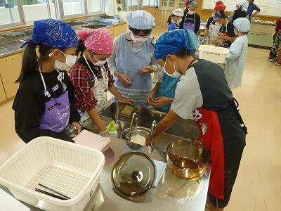 本日小学部は、秋の遠足だったのですが、11月始めに宿泊学習に行った5年生は、学校に留守番でした。弁当の日だったのでおかずのみ持ってきて、ご飯とお味噌汁を調理しました。どのグループも協力して調理し、おいしいご飯とお味噌汁ができ、おいしそうに食べていました。