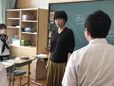 2校時に、町地域包括支援センターの方に来てもらい、認知症サポーター養成講座がありました。お年寄りに対してどのように接していくか、センターの方から教えてもらったり、自分たちで考えたりしながら、学習を進めました。