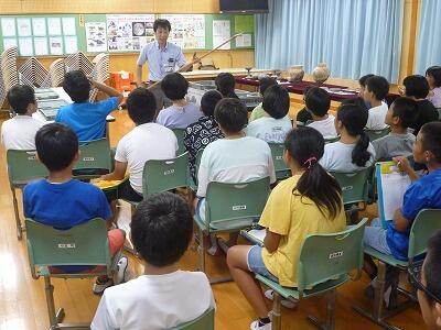 小学部6年生の社会科の学習で、埋蔵文化センターの方に来ていただきました。町内の遺跡や出土品等を見せていただきながら、歴史に関する説明を聞きました。子ども達が興味深く説明や出土品等に見入っていました。