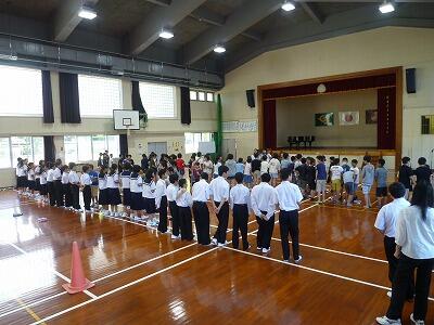 朝の時間に中学部講堂では、Bステージ集会がありました。小学部5年生~中学部1年生の子ども達が集まり、準備運動で歌に合わせて体を動かしたり、じゃんけんゲームをしたりして交流を深めました。