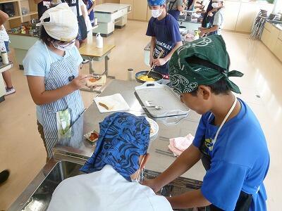 小学部6年生は、家庭科の学習で卵料理を作りました。食パンにケチャップをつけ、その上に作ったスクランブルエッグをのせて、試食しました。どのグループも準備、料理、試食、片付けと、手際よく調理をしていました。
