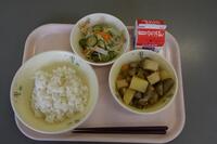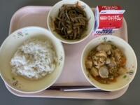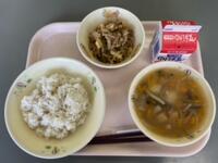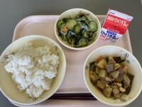 今日のこんだては、「麦ご飯」「牛乳」「里芋のそぼろ煮」「かみかみきんぴら」です。