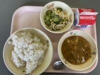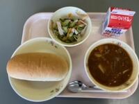 今日のこんだては、「麦ご飯」「牛乳」「ポークカレー」「日向夏ドレッシングサラダ」です。