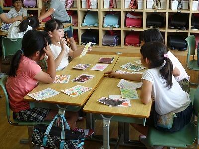 小学部5年生の図画工作「心のもよう」では、自分の気持ちを形や色で表す学習をしました。画用紙に自分なりの気持ちを絵で表し、グループごとにどんな気持ちか当てる活動を意欲的に行っていました。