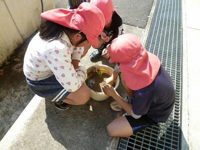 田植えの後に、少し残りの苗をもらいましたので、学校でもバケツに苗を植え育てることにしました。農園の稲、学校のバケツ田んぼの稲、ともに生長を見ていきたいと考えます。