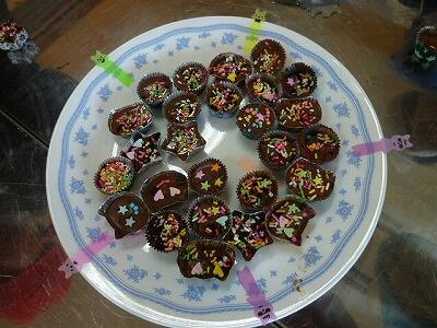 6年生の家庭科で、チョコレートを使ったお菓子作りをしました。板チョコを温め型に入れて、飾り付けをしました。おいしそうに試食していました。