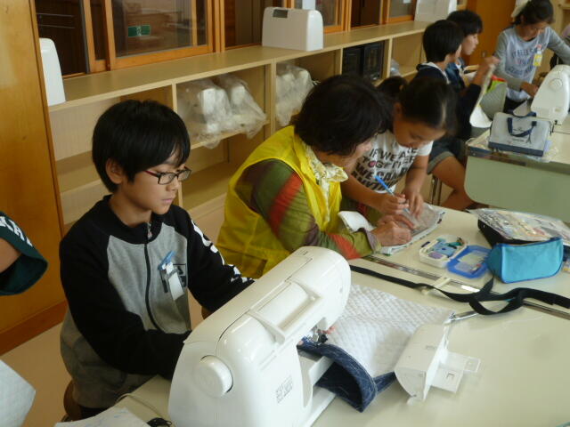 2・3校時に、6年生は家庭科の学習で、トートバック作りをしました。今日も、地域婦人会の方々が来校されて、しつけ縫いの仕方やミシンの使い方等について教えて下さいました。子ども達は、スムーズにトートバック作りを行っていました。