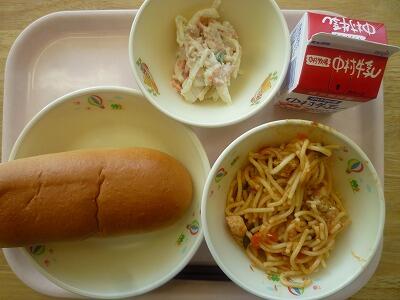 《黒糖パン ズッキーニのスパゲティ 大根サラダ 牛乳》