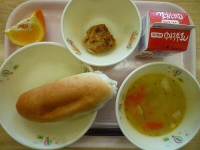 《米粉パン コーンスープ タンドリーチキン いよかん 牛乳》