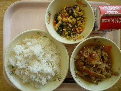 《麦ご飯 千切り大根のふくめ煮 小松菜の油炒め 牛乳》