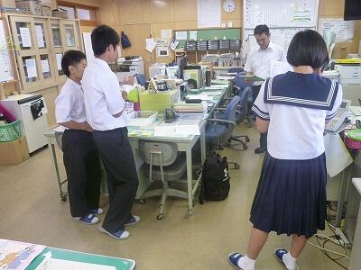 中学部の総合的な学習の時間に、中学部1年生は、新富町で働く人々について調べています。今日は、子ども達がそれぞれの職場に電話をかけて、学校に来て話をしてもらうように依頼をしていました。