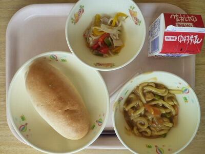 ≪米粉パン カレーうどん カラフルピーマン炒め 牛乳≫