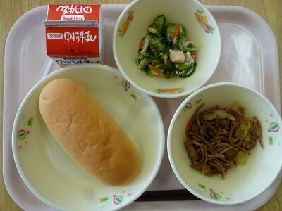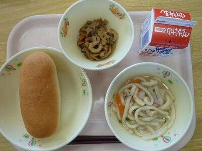 コッペパン 五目うどん きんぴらレンコン 牛乳