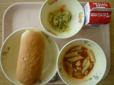《コッペパン チキンとペンネのトマト煮 グリーンサラダ 牛乳》