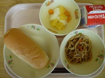 《コッペパン ジャージャー麺 あんにんフルーツ 牛乳》