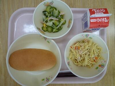 ≪コッペパン 和風スパゲティ 日向夏ドレッシングサラダ 牛乳≫