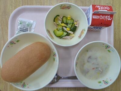 ≪コッペパン クリーム煮 ズッキーニのサラダ 日向夏ジャム 牛乳≫