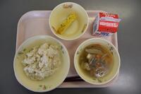 今日のこんだては「鯛めし」「牛乳」「彩り野菜の卵焼き」「けんちん汁」です。