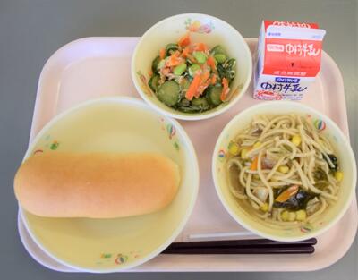 今日のこんだては、「減量コッペパン」「牛乳」「コーンラーメン」「枝豆サラダ」です。