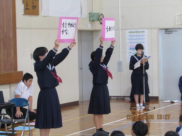 卒業生と在校生の別れのことばが、体育館に響きます期待・ワクワク