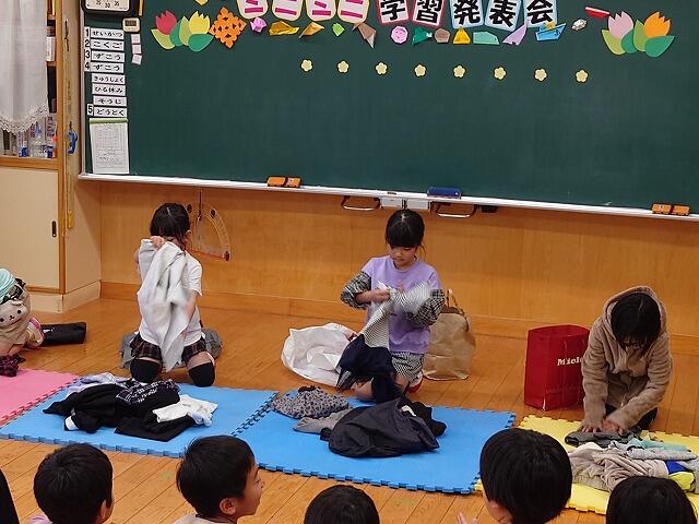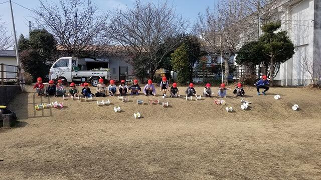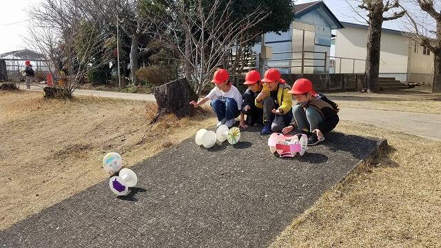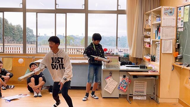 2年生が作ったおもちゃで、1年生が遊ぶという