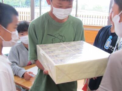 春日寿司の中には、ごぼうやにんじん、鶏肉が入っていましたね。もりもりおかわりをしている子ども達でした。1年生は、「いももち」が不思議だったようです。かぼちゃとじゃがいもで作られていましたよ