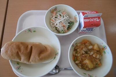11月5日(水)は、ヴィアマテラス宮崎の選手が9名来校し、子どもたちと一緒に給食を食べました。この日のメニューは「米粉パン、牛乳、秋のかおりシチュー、花野菜サラダ」でした。シチューの中には、秋を代表するさつまいもやしめじがたっぷり入っていました。選手や学級の仲間と食べる給食はとてもおいしかったですね!一人で食事をするより、食事をする相手がいる方がより幸せを感じるそうです(*^▽^*)給食の後は、選手と一緒に運動場でサッカーをしたりおにごっこをしたり、みんなで楽しい時間を過ごすことができました!