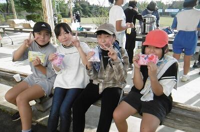 11月5日(水)は、ヴィアマテラス宮崎の選手が9名来校し、子どもたちと一緒に給食を食べました。この日のメニューは「米粉パン、牛乳、秋のかおりシチュー、花野菜サラダ」でした。シチューの中には、秋を代表するさつまいもやしめじがたっぷり入っていました。選手や学級の仲間と食べる給食はとてもおいしかったですね!一人で食事をするより、食事をする相手がいる方がより幸せを感じるそうです(*^▽^*)給食の後は、選手と一緒に運動場でサッカーをしたりおにごっこをしたり、みんなで楽しい時間を過ごすことができました!