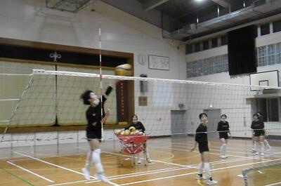 【練習をしていたのは、先日の地区中体連で、全試合ストレート勝ちの完全優勝を果たした女子バレー部の皆さん。】
